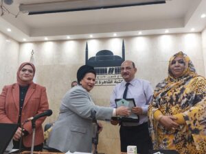وكان هناك عدة مداخلات قيمة من السادة الحضور من مصر وجنوب السودان والمغرب، والتى أضفت على الندوة مزيدا من الثراء التوعوى لأهمية دور المرأة فى المجتمع، واختتمت الندوة بتكريم السادة المتحدثين ومدير المكتبة، وكوكبة من الأعضاء المتميزين بالمؤسسة والسادة الحضور وأهدى لهم درع المؤسسة وشهادة تقدير .