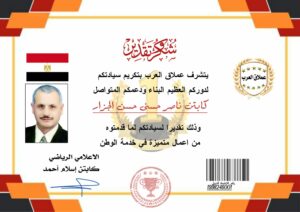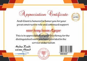 صرح الكابتن اسلام احمد مسؤول مؤسسة عملاق العرب بأن مؤسسة عملاق العرب مؤسسة دولية عندما تكرم أشخاص فلابد أن ينطبق عليهم معايير يستحقون التكريم عليها ومن ألذى تم تكريمهم الكابتن ناصر حسنى الجزار مدرب دولى للفنون القتاليه ونائب رئيس الاتحاد الدولي للالعاب الرياضيه والفنون القتالية ورئيس لجنه المحترفين بالاتحاد الأفريقي للجيت كون دو والذى يترأس الاتحاد الافريقي للجيت كون دو المستشار سمير صبري وايضا تم تكريم من دولة سوريا الشقيقة المدرب الدولي كابتن عبد اللطيف هاشم عبد الجليل