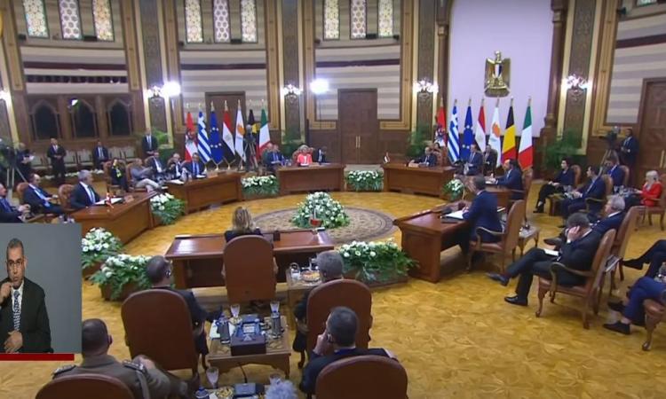 عقدت ،اليوم الأحد، قمة مصرية أوروبية مشتركة، بحضور رئيسة المفوضية الأوروبية أورسولا فون دير لاين، ورئيس المجلس الأوروبي شارل ميشيل، ورؤساء دول وحكومات قبرص وإيطاليا واليونان والنمسا.