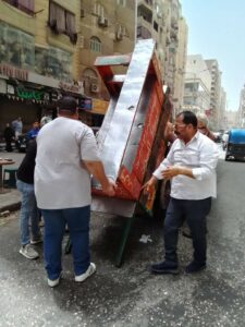وأسفرت الحملة عن رفع ٢٢ ميزان لباعة جائلين مفترشين للطريق العام و ١١ عربه كارو وتروسيكل وترولي لبيع الخضراوت والفاكهة متمركزين بمنتصف الطريق و ٢١٠ كرسي وترابيزة تابعين لمقاهي وكافيهات متعدية علي الجزر الوسطي وارصفة المشاة وسيارة نصف نقل وعدد ٤ مركبات توك توك وتم أتخاذ الإجراءات اللازمة و تحرير المحاضر للمخالفين وإعادة تنظيم الشارع وفتحه أمام حركة المرور ورفع كفاءة مستوى النظافة به.