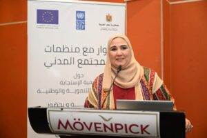واكدت أن البرنامج يعد نموذجا تطبيقيا للدعم والشراكة متعدد الأبعاد و نموذجاً لتطبيق آليات المتابعة والتقييم المستقل، مشيرة إلى تنفيذ دراسة لتقييم المشروع بالتعاون والتنسيق مع المركز القومي للبحوث الاجتماعية والجنائية لقياس مدى أثر التدخلات والأنشطة المنفذة خلال 3 أعوام، حيث سيتم نشر نتائح الدراسة وأهم التوصيات والدروس المستفادة وتوثيق قصص النجاح على الجهات الشريكة متضمناً موسسات المجتمع المدني.
