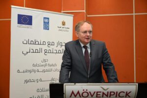 حوارا مع منظمات المجتمع المدني بمحافظة أسوان حول ” كيفية الاستجابة للمستجدات التنموية والوطنية”، وذلك بحضور السفير كريستيان برجر رئيس بعثة الاتحاد الأوروبي في مصر، والسيد أليساندرو فراكاسيتي ممثل برنامج الأمم المتحدة الإنمائي، والسفير عمر أبو العيش مساعد وزير الخارجية وأمين عام اتفاقية المشاركة بين مصر والاتحاد الأوروبي، والأستاذ أيمن عبد الموجود مساعد وزيرة التضامن الاجتماعى لشئون مؤسسات المجتمع الأهلي، والدكتورة مرفت صابرين مساعد وزيرة التضامن الاجتماعي للحماية الاجتماعية والتمكين الاقتصادي،