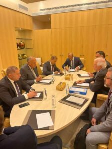 واختتم المتحدث باسم الخارجية تصريحاته، مشيراً إلى اتفاق الجانبين على استمرار التشاور الوثيق خلال الأيام القادمة للدفع نحو إنهاء الحرب في قطاع غزة، وإطلاق عملية سياسية جدية وفاعلة للتسوية الشاملة للقضية الفلسطينية على أساس حل الدولتين بما يفضي إلى إقامة دولة فلسطينية مستقلة على حدود الرابع من يونيو للعام ١٩٦٧.