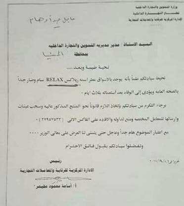 وحذرت وزارة التموين من استخدام عطر يحمل اسم #ريلاكس تم طرحه في بعض الصيدليات ومحلات العطور، ويؤدي للوفاة بعد 3 أيام من استعماله.