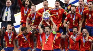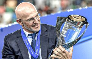 قاد لويس دي لا فوينتي، منتخب بلاده إسبانيا للتتويح بلقب النسخة 17 من بطولة كأس أمم أوروبا يورو 2024، بعد الفوز على منتخب إنجلترا بهدفين لهدف على الملعب الأولمبي في برلين، ليحصد “لاروخا” الكأس للمرة الرابعة في تاريخه.