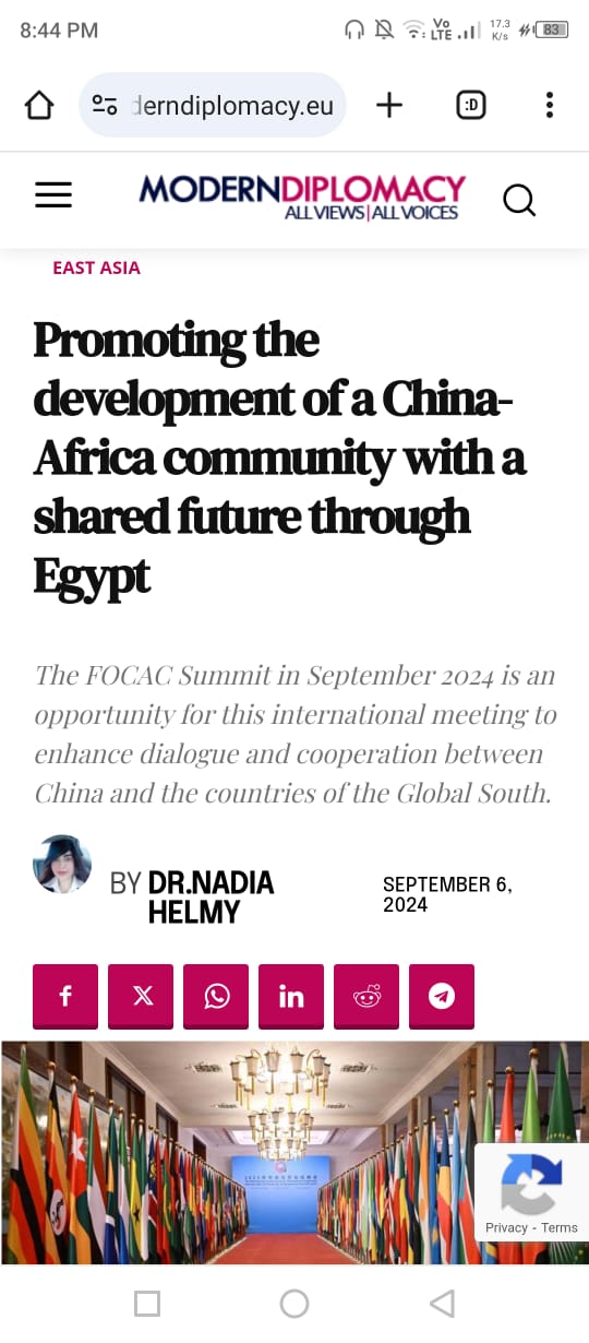 اليوم تجد مصر نفسها في إطار إستراتيجى، نظراً لموقعها بين أفريقيا وأوروبا والعالم العربي والإسلامي والشرق الأوسط والبحر الأحمر وحوضي البحر الأبيض المتوسط الشرقي والغربي. لذلك يمكن لمصر أن تثمن هذه الورقة الاستراتيجية المهمة، والتي تمثل بالنسبة للصين حقيقة أساسية في معادلة التوسع في منطقة البحر الأبيض المتوسط وجنوب أوروبا، وفي نفس الوقت مدخلًا إلى أفريقيا التي تعتبر مصر أحد أهم محركاتها الرمزية ثقافيًا وسياسيًا. وفي هذا الصدد، يتعين على مصر والدول الأفريقية إستغلال هذا التقارب مع الصين من خلال شراكات متعددة والخروج من العباءة الأمريكية والغربية والأوروبية وتقدير قدراتها التى إستنزفها الغرب وإعادة التوازن في العلاقات مع كافة الشركاء على أساس مبدأ (السيادة الوطنية واحترام استقلال البلاد وعدم التدخل في الشئون الداخلية).
