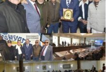 العمدة/ فوزى السمالوسى رئيس هيئة القبائل العربية بمصر والوطن العربي. والكابتن/احمد المهدى ممثلا عن النقابة العامة للمهن الرياضية وقيادات هيئة القبائل العربية