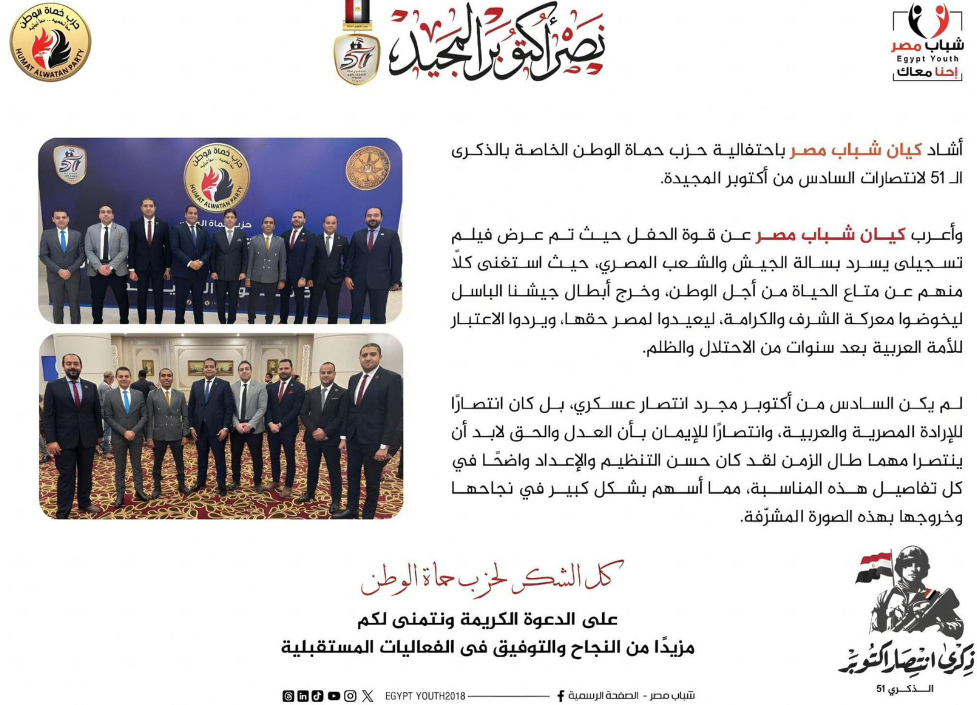 حزب حماة الوطن يسطر ملحمة كبرى باحتفالات اكتوبر المجيدة