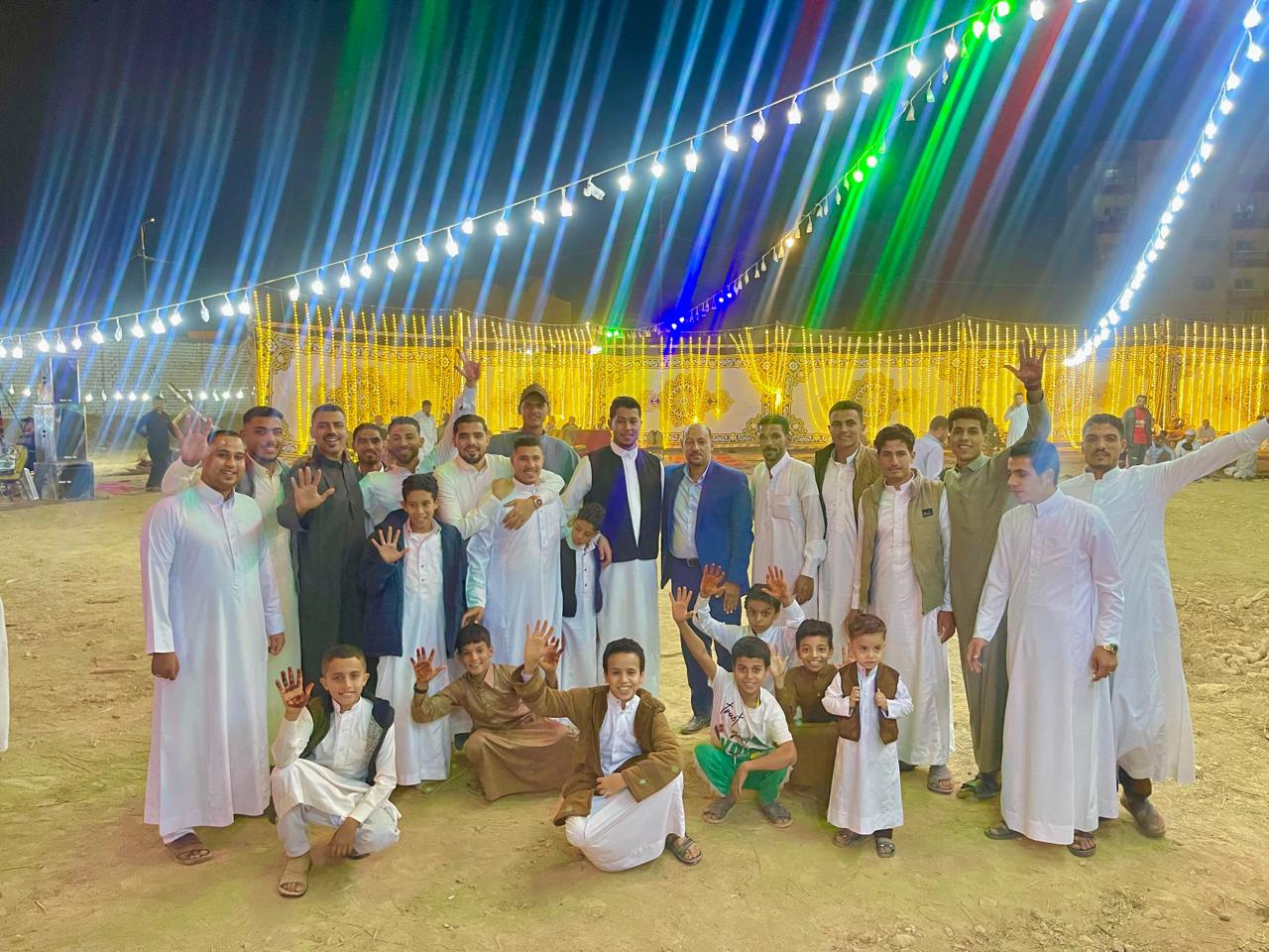و قد حضر الزفاف الذي اقيم لاكثر من ثلاثة ايام على ارض قبيلة العميري بالعامرية مشايخ و عواجل قبيلة العميري و قبيلة الحوتي و الصناقره و كل الاهل و الاحباب لكي يباركون و يسعدون بهذا الزفاف الكبير …