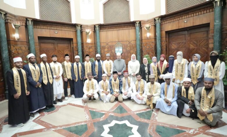ورحب شيخ الأزهر بأبنائه الطلاب، معربًا عن سعادته باستقبال حفظة كتاب الله، مؤكدًا حرص الأزهر الشريف على تعليم القرآن الكريم ونشر علومه، وإتاحة فرصة الدراسة الحرة لحفظ القرآن الكريم والتفقه في علومه وضبط التلاوة للطلاب الوافدين، ومساعدتهم في تعلم النطق الصحيح لآيات كتاب الله، وتعليم التجويد وأحكام التلاوة، بجانب نشر المنهج الأزهري الوسطي المعتدل.