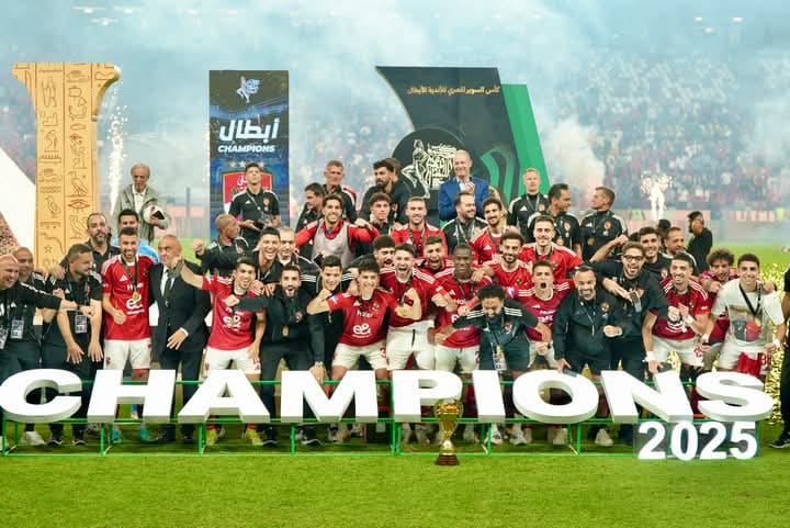 مبروك للنادي الاهلي وجماهيره العظيمه الفوز بلقب السوبر المصري على حساب الغريم التقليدي نادي الزمالك مبروك للاعبين الذين يستحقون الفرحه والانتصار وحظ أوفر لنادي الزمالك ومديره الفني وجماهيره التي كانت تمني النفس بالفوز ولكن القادم مع أحمد عبد الرؤوف إذا استمر في قياده نادي الزمالك سيكون هو الأفضل للقلعه البيضاء من كافة الوجوة .