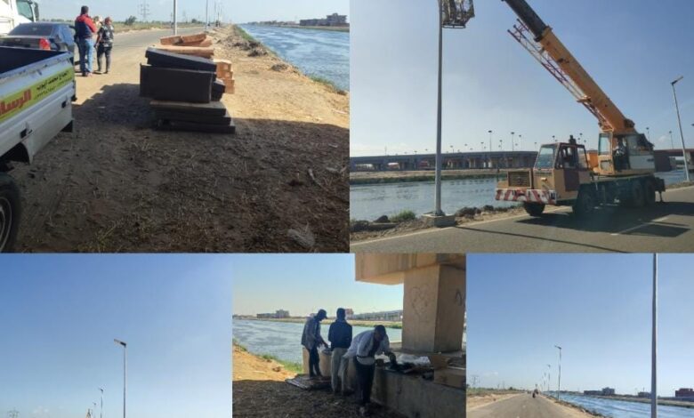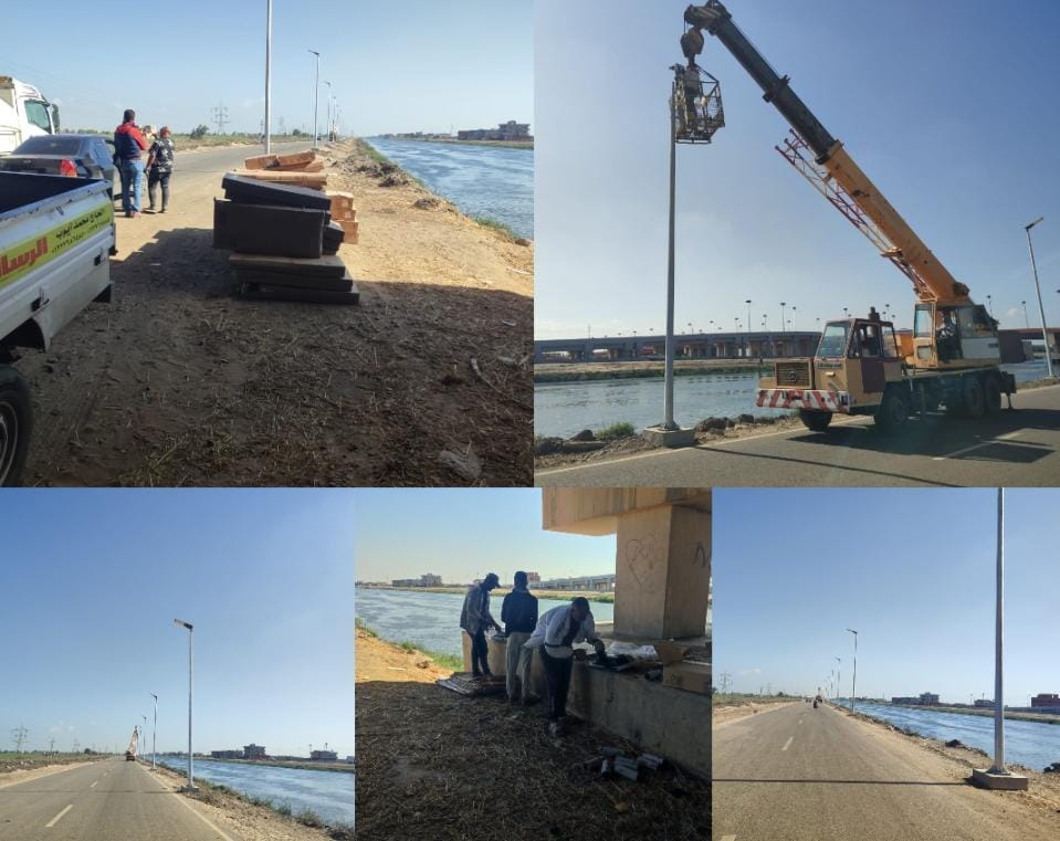 بدء تركيب كشافات إنارة بالطاقة الشمسية بطريق ترعة السلام جنوب بورسعيد