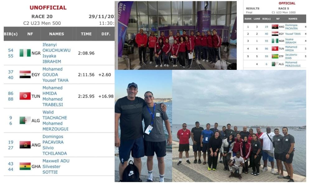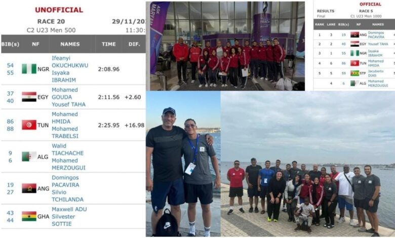 فوز منتخب مصر بميدالية ذهبية وفضية في البطولة الأفريقية الثانية عشر للكانوي والكياك بأنجولا