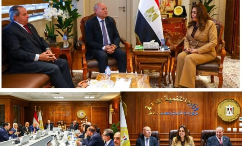 وزيرة التنمية المحلية تناقش مع محافظي القاهرة وبورسعيد تطوير أسواق العتبة والحميدي والتجاري ببورسعيد