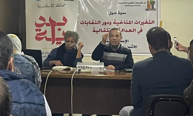 دار الخدمات النقابية والعمالية تعقد ندوة حول التغيرات المناخية ودور النقابات العمالية في العدالة الإنتقالية بفرعها بالإسكندرية