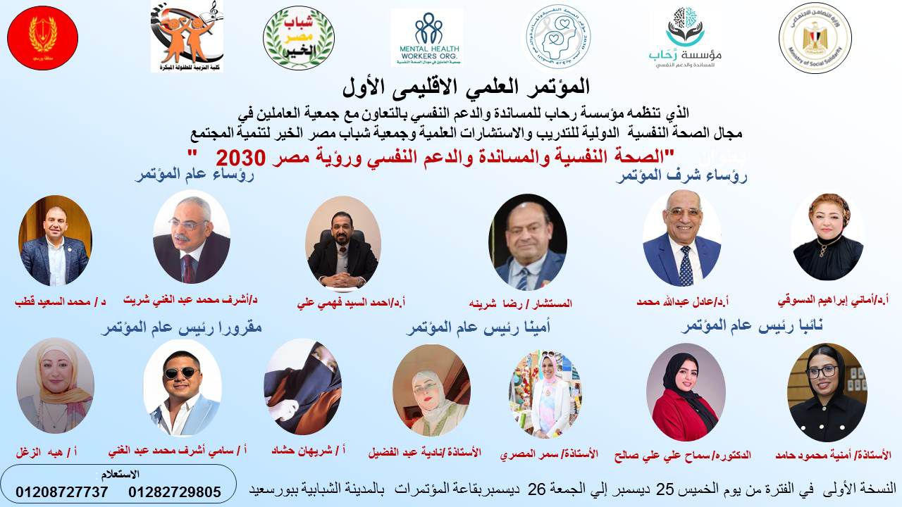 وذلك بالتعاون مع الأكاديمية الدولية للتدريب والاستشارات العلمية وجمعية شباب مصر الخير ومشاركة نخبة من أساتذة من مختلف الجامعات المصرية ولفيف من الأساتذة العاملين بمجال الصحة النفسية وناقش المؤتمر العديد من الموضوعات منها كيفية حماية الأطفال من التحرش الجنسى كيفية وسائل دعمهم ورعايتهم ،وموضوعات حول تأثير الذكاء الاصطناعي على سلوك الطفل والصحة النفسية ، هذا وشارك بالمؤتمر د.امانى الدسوقى عميد كلية الطفولة المبكرة ، والدكتور عادل عبد الله رئيس شرف وراعي المؤتمر والدكتورة هبه الزعل مقرر عام المؤتمر وا. سمر المصرى، والدكتورة سماح صالح نائب رئيس المؤتمر ، وكلا من الدكتور محمد قطب ،والدكتور محمد فهمى ، والدكتور أشرف شريت رؤساء عام المؤتمرهذا واستعرضت جلسات المؤتمر العديد من الموضوعات العلمية والنفسية بمجال الصحة النفسية حاضر فيها كلا من الدكتور عادل عبد الله استاذ التربية الخاصةو العميد السابق جامعة الزقازيق بمحاضرة حول التحرش الجنسى وطرق الوقاية والحماية والصحة النفسية ، وناقش الدكتور اسماعيل الفقى استاذ علم النفس جامعة عين شمس موضوعات حول نحو بيئة آمنة للصحة النفسية ،كما ناقش الدكتور اسماعيل بدر عميد التربية سابقا جامعة بنها موضوع حول ‘” ظاهرة التحرش الجنسى وطرق معالجتها ” وناقشت الدكتورة زينب السماحى كلية التربية للطفولة المبكرة جامعة بورسعيد ” دور الدعم النفسى والاجتماعي فى خفض الضغوط الوالدية لاباء ذوى الاعاقة ، وموضوع اخر حول الاعتداء على الأطفال ذوى الاحتياجات الخاصة ، كما شاركت بالمناقشات كلا من الدكتورة وسام البنا ،والدكتورة وسام عبد المسيح، والدكتور إبراهيم بغيده، ورشا مبروك جامعة بورسعيد كما ناقش كلا من الدكتور عبد الصبور محمد والدكتورة حميدة العربى كلية التربية جامعة بورسعيد والدكتورة سماح صالح خبير الصحة النفيسة والتخاطب ونائب رئيس المؤتمر بموضوعات حول