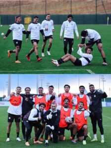 -أجواء_مرحة في معسكر منتخب مصر في أول مران له استعداداً لمباراة أنجولا بعد حجز بطاقة التأهل لدور القادم بأمم إفريقيا.