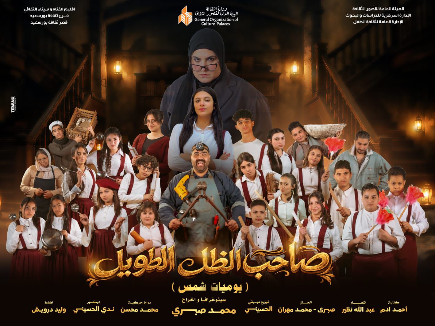مخرج منفذ سها عبد الرحيم، وديكور ندى الحسين ، وألحان محمد مهران ، والسيد الجزار ، كتابة احمد ادم ، اشعار وتلحين عبد الله نظير ، موسيقى الحسينى رزق، إضاءة وليد درويش ، دراما حركية محمد محسن ، تمثيل الموهبة الصاعدة السيد احمد الجزار ومشاركة كوكبة من المواهب المتميزة بقصر الثقافة وياتى هذا العرض الفنى المسرحى ضمن فعاليات ” ملتقى اعتماد المخرجين ” فى رؤية فنية جمعت بين كوكبة من أداء الممثلين المتميز بتألق على خشبة مسرح قصر ثقافة بورسعيد