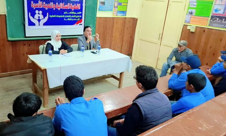 فى اطار استراتيجية قطاع الاعلام الداخلى بالهيئة العامة للاستعلامات من خلال محور القضية السكانية وتنمية الأسرة وبإشراف الدكتور أحمد يحيى رئيس القطاع ومتابعه من الدكتور تامر شمس الدين رئيس الإدارة المركزيه لإعلام القناه وسيناء نفذت اليوم ادارة اعلام شمال سيناء ندوه حول تمكين الشباب اقتصاديا بالمشروعات الصغيره للحد من البطاله حاضر فيها المهندس محمد سلامه حسين مدير جهاز تنمية المشروعات بشمال سيناء وذلك بمدرسة الشهيد ملازم اول محمد إبراهيم سليمان ( الثانويه التجاريه بنين )