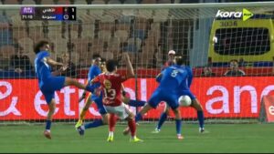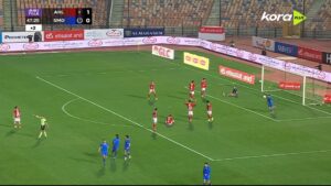 افتتح النادي الأهلي التسجيل عن طريق أفضل لاعبية جدية وفدائية “محمود تريزيجية” جاء بعد تسيد وسيطرة من لاعبي الأهلي على سير المباراة ولكن كالعادة في المباريات الأخيرة للأهلي يستقبل هدف في شباكة بسبب عدم تمركز وتغطية لاعبي خط الوسط وارتدادهم السريع لدعم الدفاع وهو ما كلف النادي الأهلي خسارة العديد من النقاط في الفترة الأخيرة.