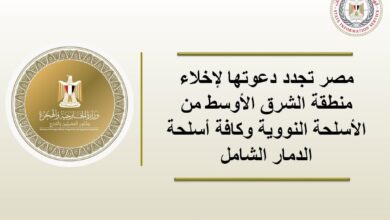 مصر تجدد دعوتها لإخلاء منطقة الشرق الأوسط بالكامل ودون إستثناء من الأسلحة النووية وتخصع لتفتيش الوكالة الدولية للطاقة الذرية .