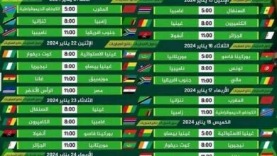 جدول مباريات كأس أمم أفريقيا