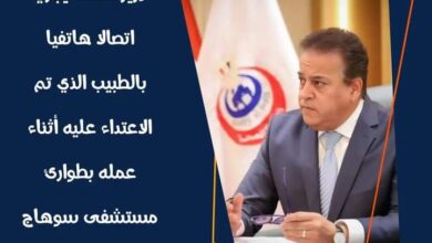 وزير الصحة يطمئن كل علي صحة الطبيب الذي تعرض للاعتداء أثناء تأدية عمله في مستشفي سوهاج التعليمي