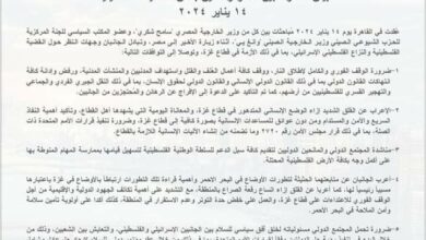 بيان مشترك بين مصر والصين بشأن القضية الفلسطينية
