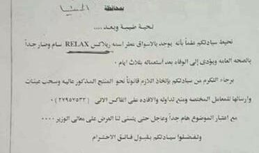 كتب ؛ناصر الجزار الحقيقة كاملة لعطر «ريلاكس»حذرت وزارة التموين من استخدام عطر يحمل اسم «ريلاكس»تم طرحه فى بعض الصيدليات ومحلات…